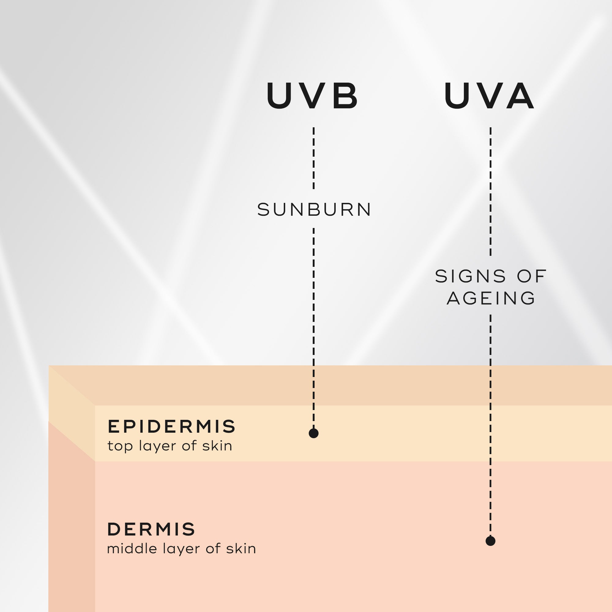UVA rays are mostly responsible for premature skin ageing as they can penetrate deep into the skin and deplete collagen levels. UVB rays attack the upper layers of the skin, causing sunburn. Both types of rays can cause tanning, and both have the potential, in the long term, to cause skin cancer.