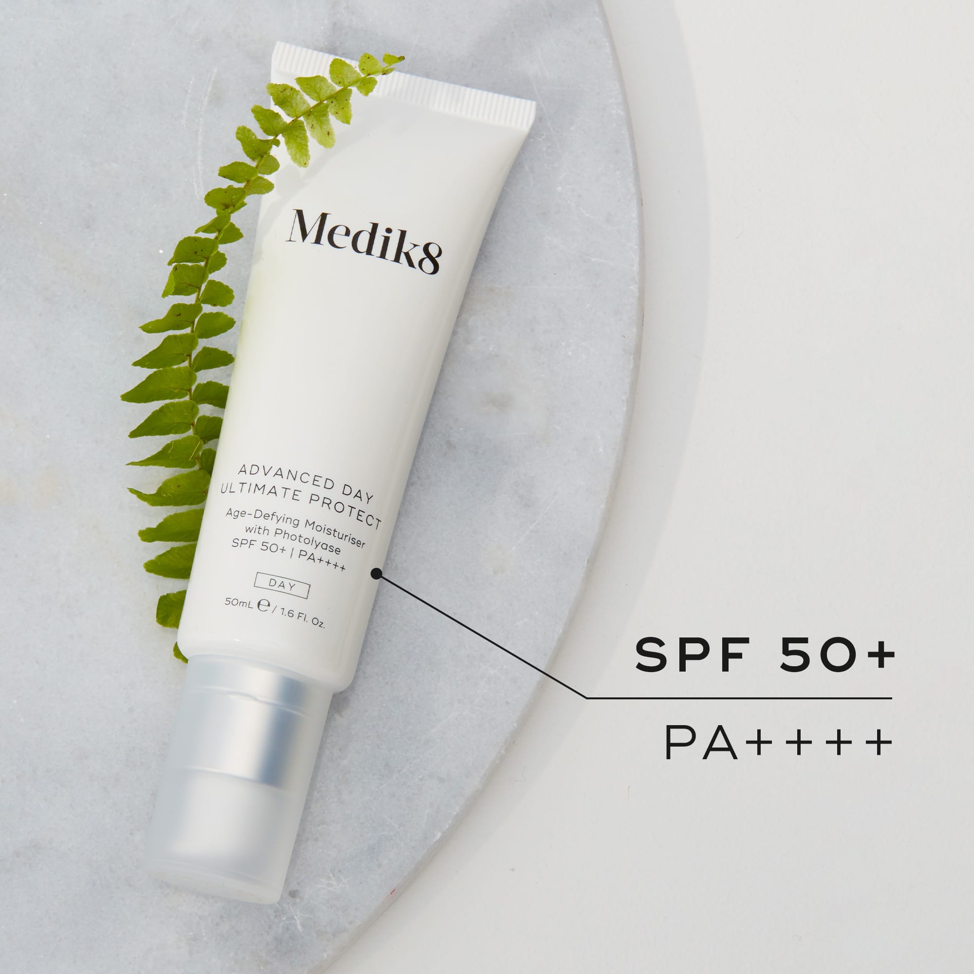 All Medik8 sunscreens deliver high SPF and ‘broad spectrum’ protection, with our Advanced range also meeting the highest 5* rating of Ultra UVA protection. Advanced Day Ultimate Protect additionally offers the highest rating of PA++++ protection.